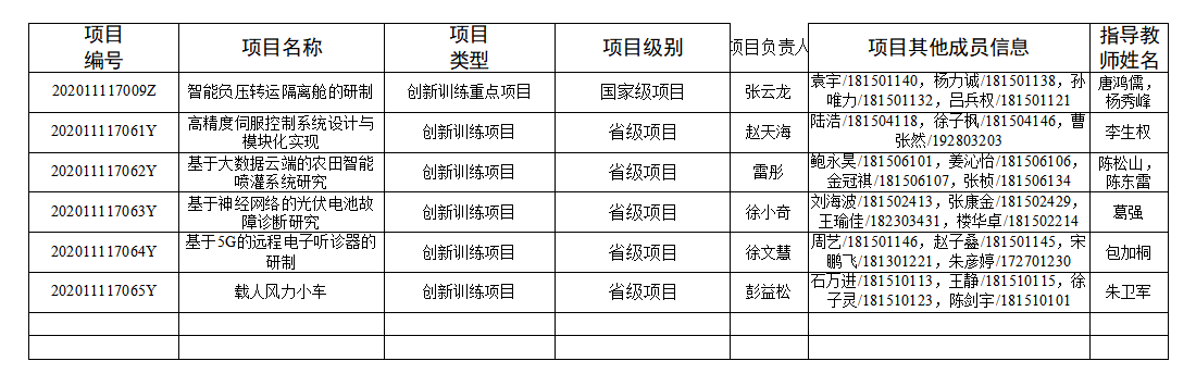 电气与能源动力工程学院2020年校级以上科创基金项目立项情况汇总表