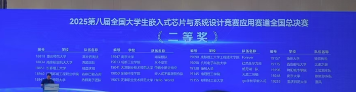 喜报频传捷报至,我院学子创佳绩!在近日举行的多项学科竞赛中,我院参赛团队凭借扎实的专业功底和出色的创新能力,从全国众多高校队伍中脱颖而出,分别在第八届(2025)全国大学生嵌入式芯片与系统设计竞赛应用赛道斩获1项一等奖、1项二等奖,第18届(2025)中国大学生计算机设计大赛斩获1项二等奖,充分展现了我院卓越的人才培养成果和学子风采。这些荣誉不仅是对参赛师生辛勤付出的肯定,更为学院学科建设再添亮眼成绩单!