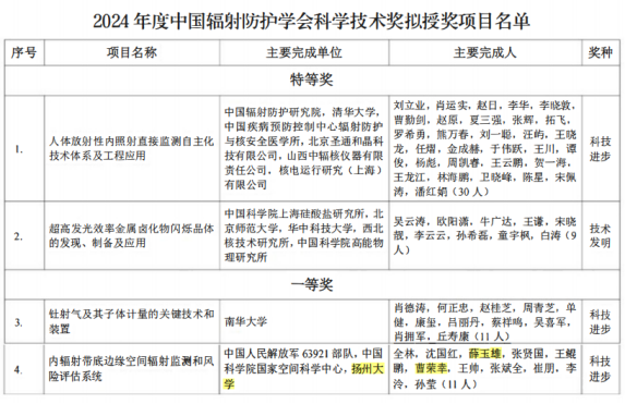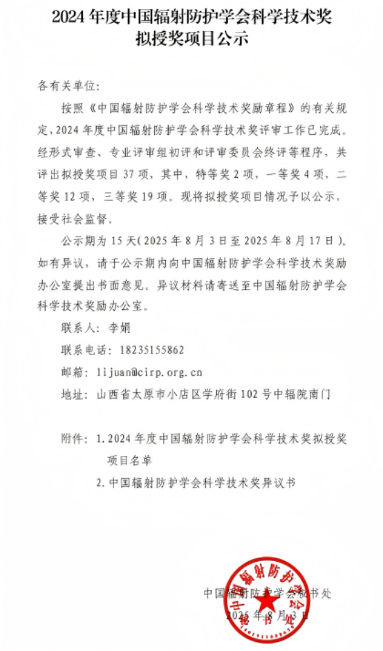 喜报!热烈祝贺我院教师科研项目荣获2024年度中国辐射防护协会科技进步一等奖