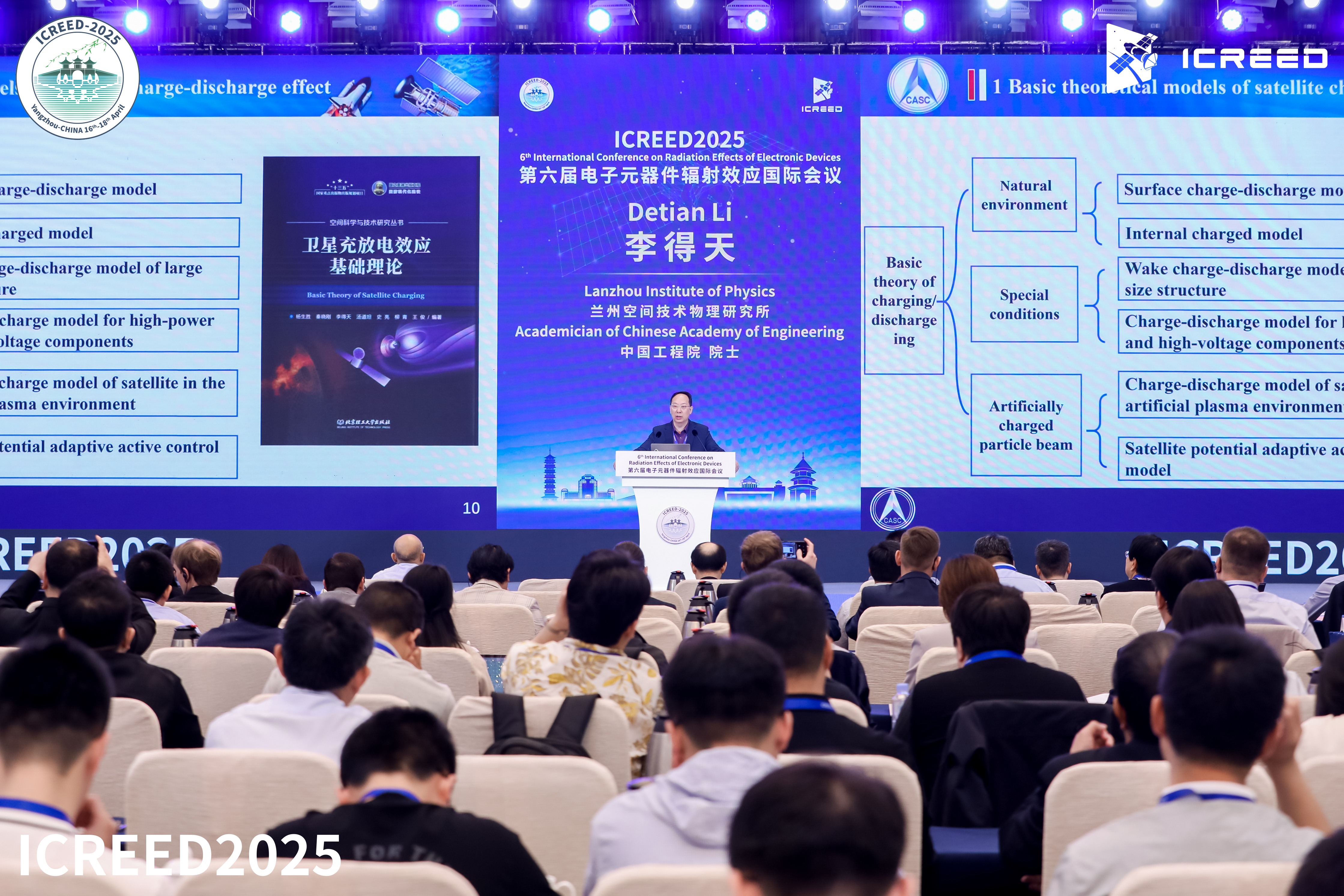 中国工程院院士李得天以“The simulation test technology of the space charge-discharge effect and its application in China Space Station”为主题发表主旨演讲。李院士在报告中介绍了卫星充放电效应的基础理论、测试方法、仿真分析与空间环境模拟试验技术,提出了卫星电位测量与主动控制技术,已成功应用于中国空间站充放电效应防护。自2021年以来,该系统持续保障航天员出舱活动安全。目前该技术已全面应用于导航、通信、遥感等卫星的防护设计及在轨运行。